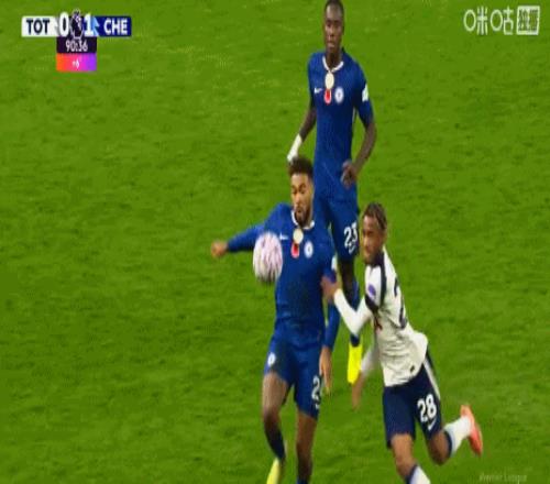 補時第1分鐘,詹姆斯禁區內手部碰到皮球,主裁判未予判罰。