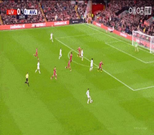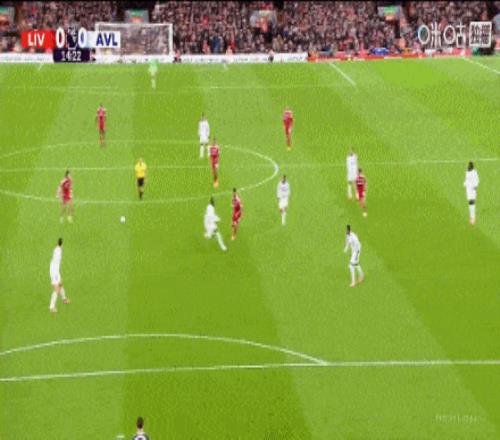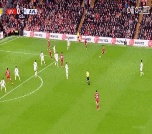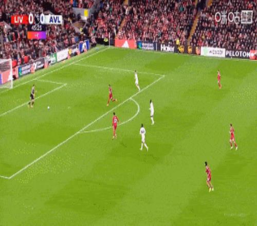 半場補時第1分鐘,馬丁內斯開球失誤,薩拉赫斷球后推射實現連場破門,利物浦1-0領先維拉。